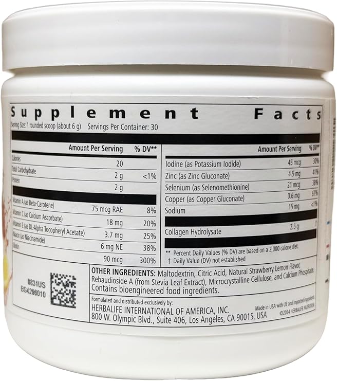 Potencia tu rutina de belleza con este colágeno en polvo de sabor limonada de fresa. Formulado para apoyar la salud de la piel, cabello y uñas, este suplemento combina colágeno de alta calidad con un perfil de sabor refrescante y agradable. Con 6.03 oz por envase, ofrece múltiples porciones para un tratamiento consistente. Ideal para quienes buscan complementar su régimen de cuidado desde adentro hacia afuera, proporcionando los aminoácidos esenciales que tu cuerpo necesita para mantener una apariencia radiante y juvenil.