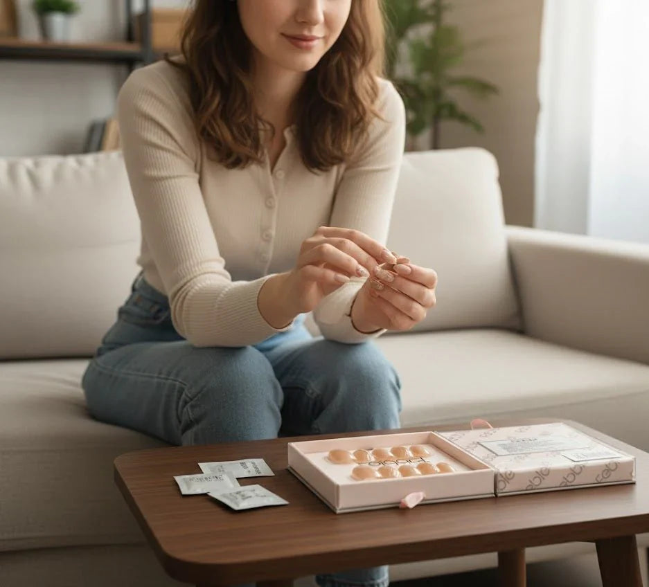 Febble's Nude Marble Swirl Press-On Nails deliver salon-quality manicures in minutes. Each set features an elegant marble swirl design in soft nude tones, offering sophisticated style without the commitment of traditional nail polish. Pre-sized and ready to apply, these nails provide a flawless finish that lasts up to two weeks. Perfect for those seeking a polished, professional appearance with minimal effort and maximum durability.